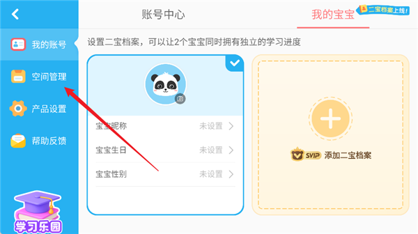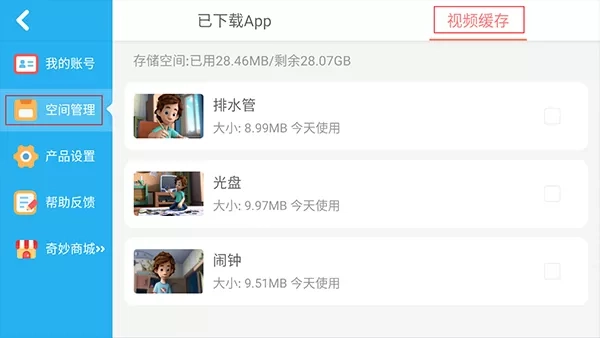 1. 来到账号中心页面,轻点左侧菜单栏里的“空间管理”选项,接着点击右上方的“视频缓存”按钮。
