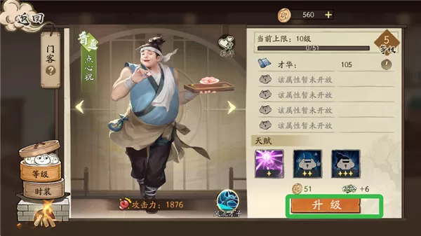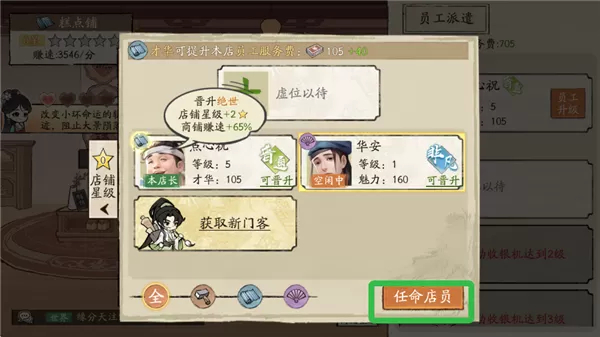 派遣的门客等级越高,店铺的赚钱速度就越快。