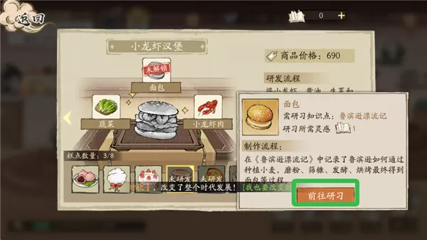 2. 若要研习菜品,需先解锁其配方,点击尚未解锁的配方即可。