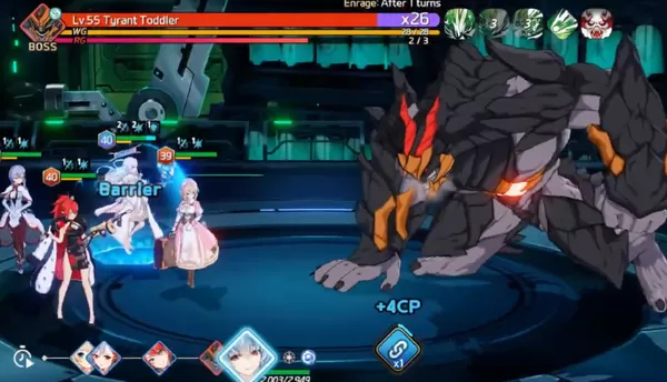 请注意,只有当 BOSS 进入狂暴状态后,才能有效地打破 WG 条。因此,请在 BOSS 狂暴之后再使用 CP 技能,如此便可轻松击败 BOSS 。(若觉得自身练度不足,可强化装备并将角色突破至 40 级。若缺少石头,可在主线相应章节刷取。)