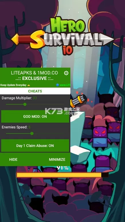 内容:mod,1.无敌 2.伤害n倍可调 3.敌人速度n倍速可调 无尽的IO大混战生存