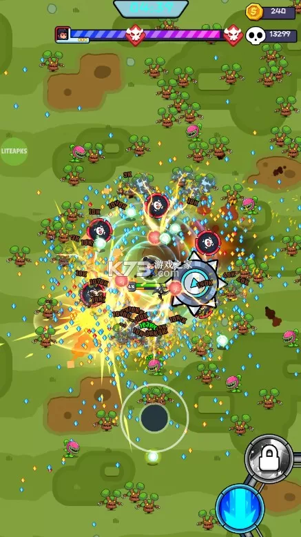 多样化的视觉技能:每个角色都会有一个带有隐藏被动技能的独特技能,有些角色只能使用指定的武器。用技能完成关卡:每次你在战斗中升级时,你都会获得一个你选择的技能,组合技能会让你的胜利更容易。简单的玩法因为这是一款.io游戏,所以游戏的玩法极其简单易懂,任何玩家都可以轻松上手。这款游戏要求玩家做的最重要的事情就是拥有最适合自己角色的装备,当然,他们还必须通过不断升级来变得非常强大。在游戏玩法上,玩家将被投入一场战斗,周围将有许多神秘的生物。我们必须在这样的世界中生存下来,不断击败怪物并升级以获得特殊技能,这些技能将帮助我们更好地生存。
