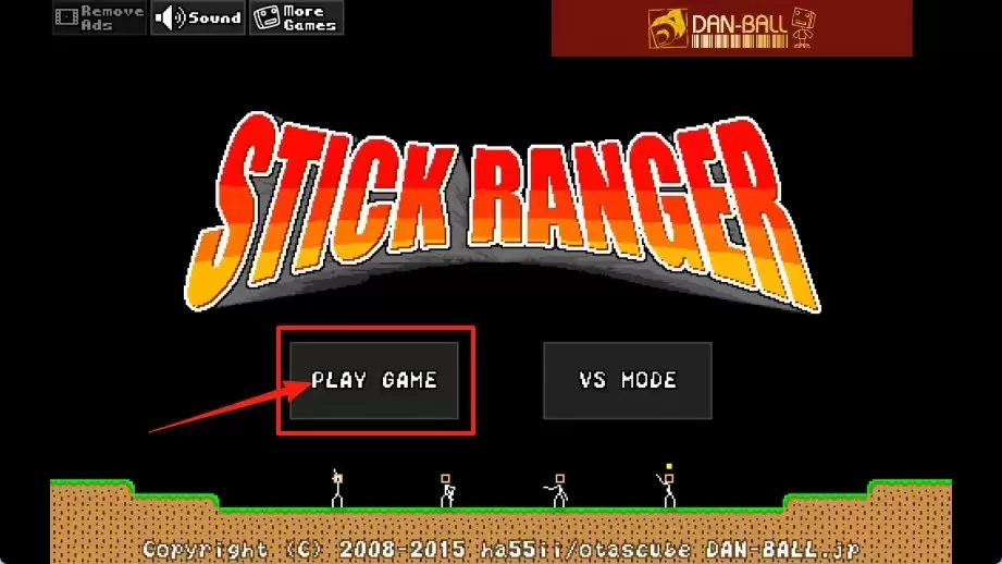 1. 点击红色箭头所指的“PLAY GAME”按钮,即可开启游戏。右侧的“VS MODE”代表对战模式。