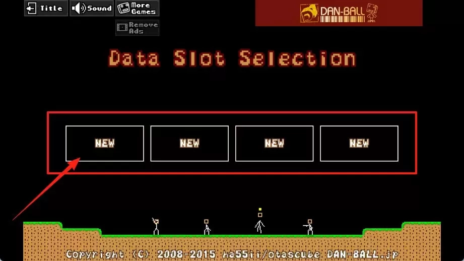 2. 选择第一个标有“NEW”的红色框开启新游戏,其他存档后续可用。