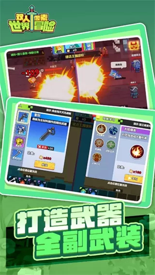 《双人像素世界冒险》是一款趣味十足的休闲益智游戏,能给玩家带来很棒的游戏体验。在游戏里,你可以邀请好友一起组队开黑。游戏中有大量装备和武器可供自由选择搭配,玩家要通过这些去成功救出公主,完成任务就能轻松取胜。