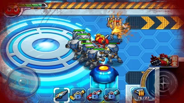 2、当遇到敌方机器人靠近时,点击攻击按钮,操控角色使用武器射击敌人。