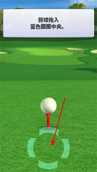 2、放置中间的高尔夫球,将球拖入蓝色圆圈的中央,确保球在正确的发球位置。