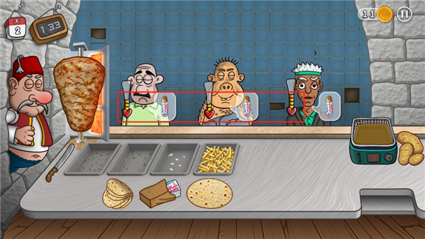 2、玩家在游戏中需要制作沙威玛,并提供给顾客;