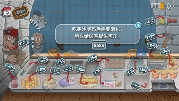 6、每一天的营业时间都有时间限制的,玩家可以尽可能在规定的时间内多赚点钱哦;
