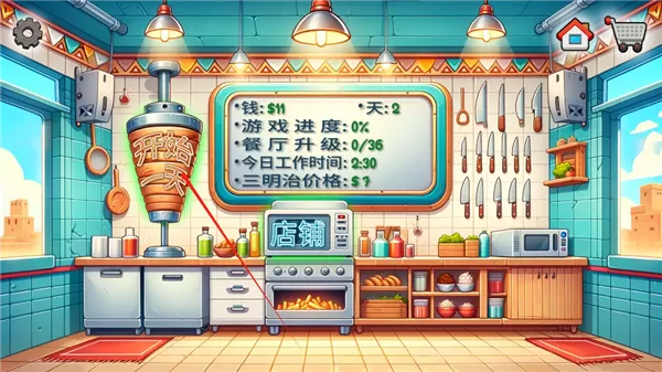 画面场景体验设计得尽可能接近真实餐厅,让你沉浸在游戏中的沙威玛大厨的生活。