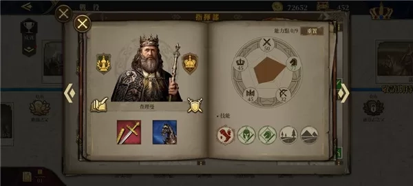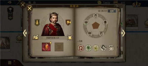 3、阿弗雷德大帝:零氪可通过勋章购买的传奇将领(零氪仅能获取他与贝利撒留两位传奇将领),氪金玩家无需培养。步骑双高面板搭配 “急行军” 技能,是少数支持步骑混编的将领,但专武加成集中在减伤与内政,与战斗定位脱节;主动技能 “拆城墙” 冷却 5 回合仅能拆 30%,弱于狮心王的攻城能力。兵种推荐搭配两冲锋骑兵 + 一防御步兵。