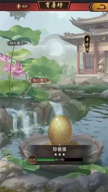当然,获取珍兽并非仅靠参与活动。只要大人您的官品升至正四品,便能解锁奇珍阁中的育兽坊,同时还可得到一颗3星珍兽蛋。大人可通过收集露珠来积累升级进度,进而培育出专属自己的珍兽伙伴。