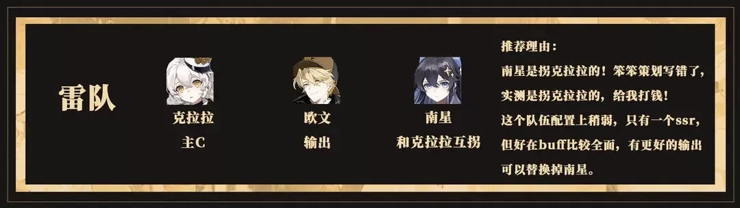 南星+自己喜欢的主力金卡,金卡根据内测情况首推北洛(6元首充送的内测第一大数值怪),极其变态,三冠北洛伤害就能打平四冠限定up冰龙 且操作难度适中,公测不削弱其他角色没法玩。
