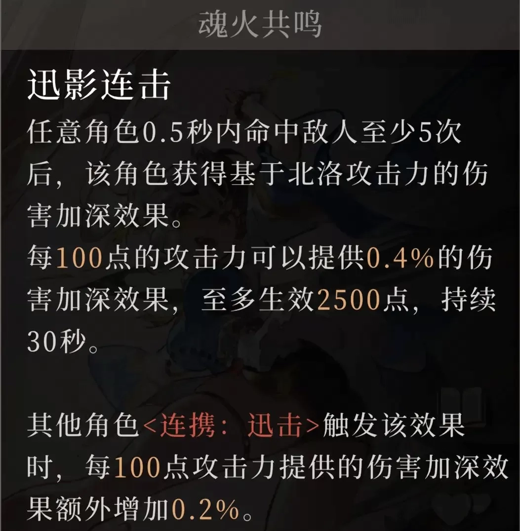 以北洛举例,带有<连携:迅击>标签的技能触发后,能被该标签增幅的柯尔特,就可以获得额外加成,反之同样如此,