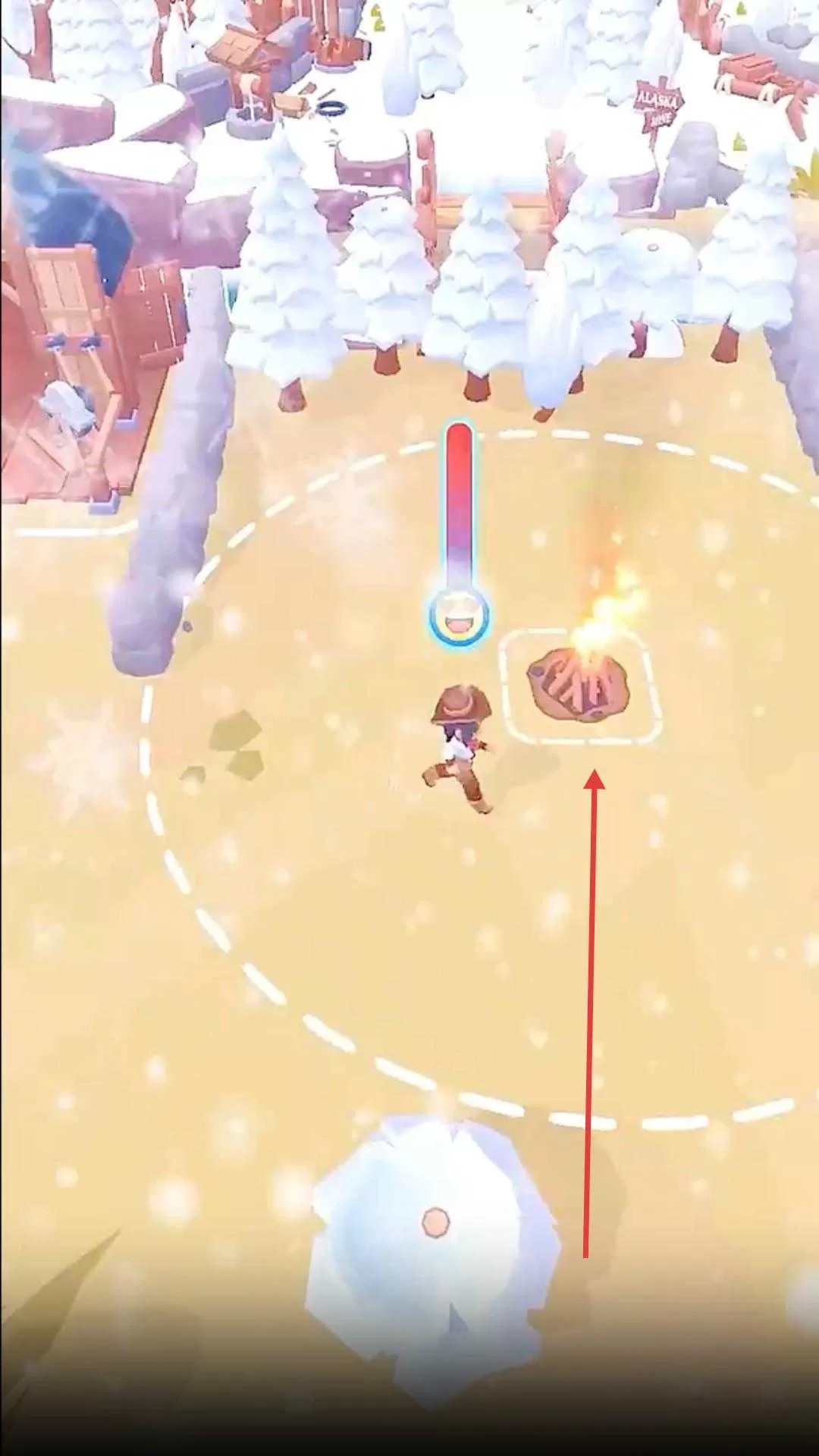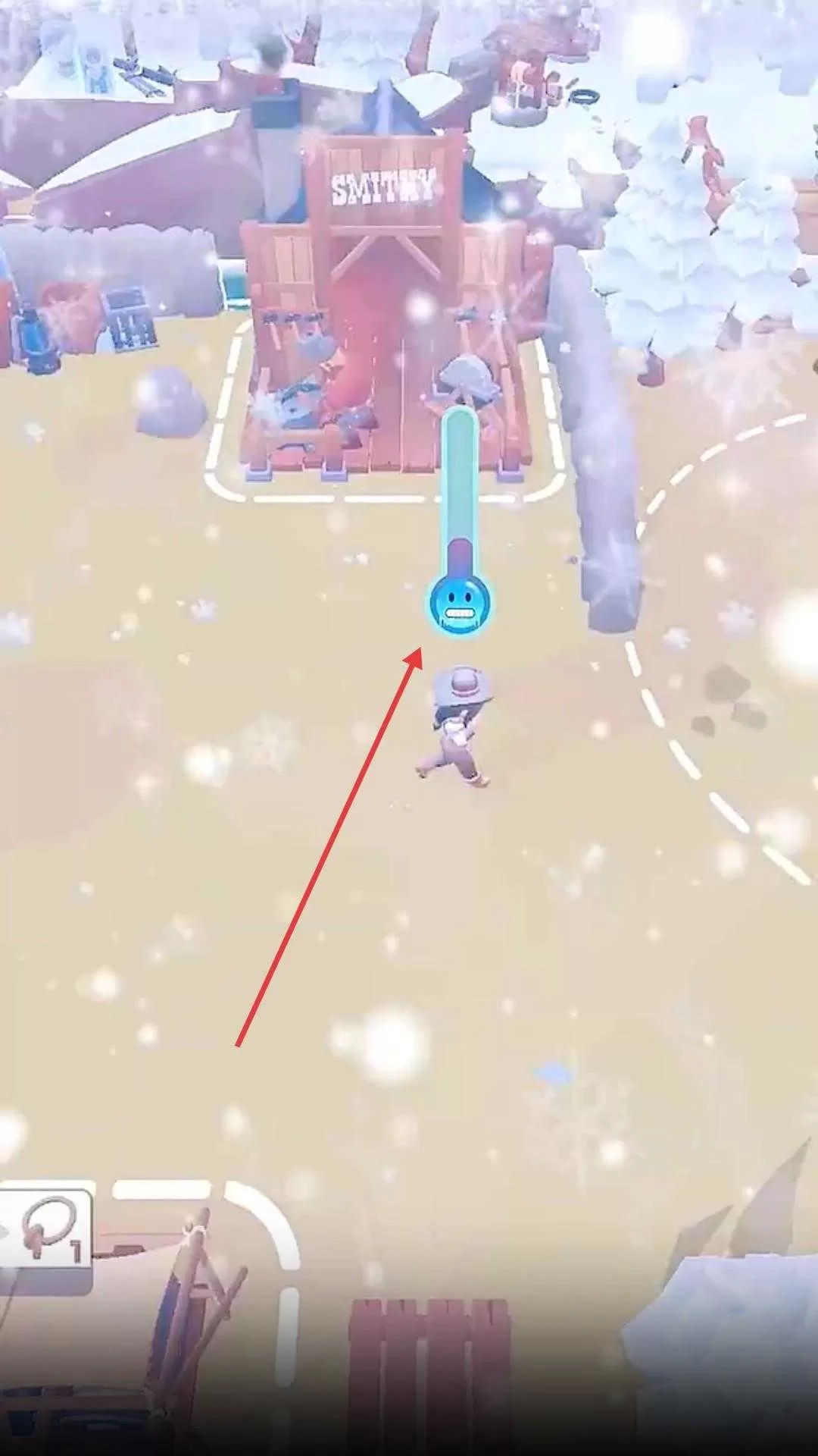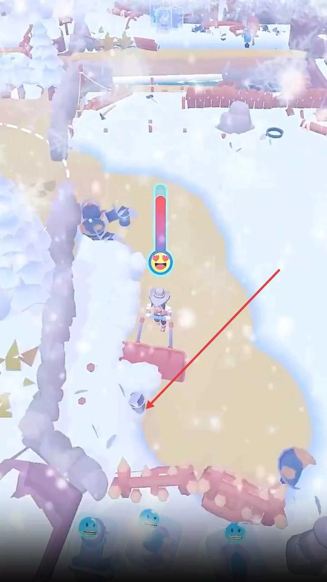 4、使用铲雪工具清理积雪,开辟道路,同时注意保持角色体温,确保在雪地环境中顺利行动。
