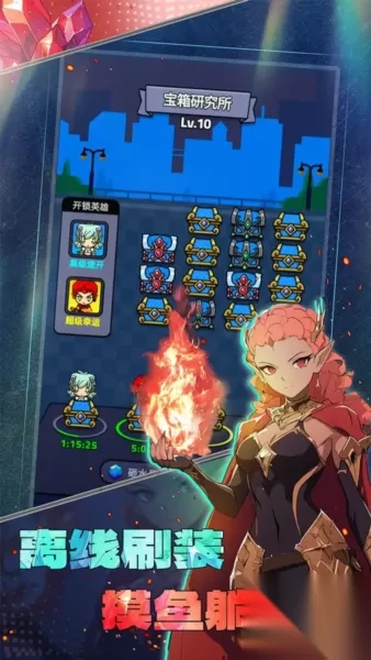 3、放置探索与随机事件:派遣英雄探索遗迹、深海等区域,无需实时操作即可获取装备与材料,探索中随机触发“宝藏密室”“怪物伏击”等事件。