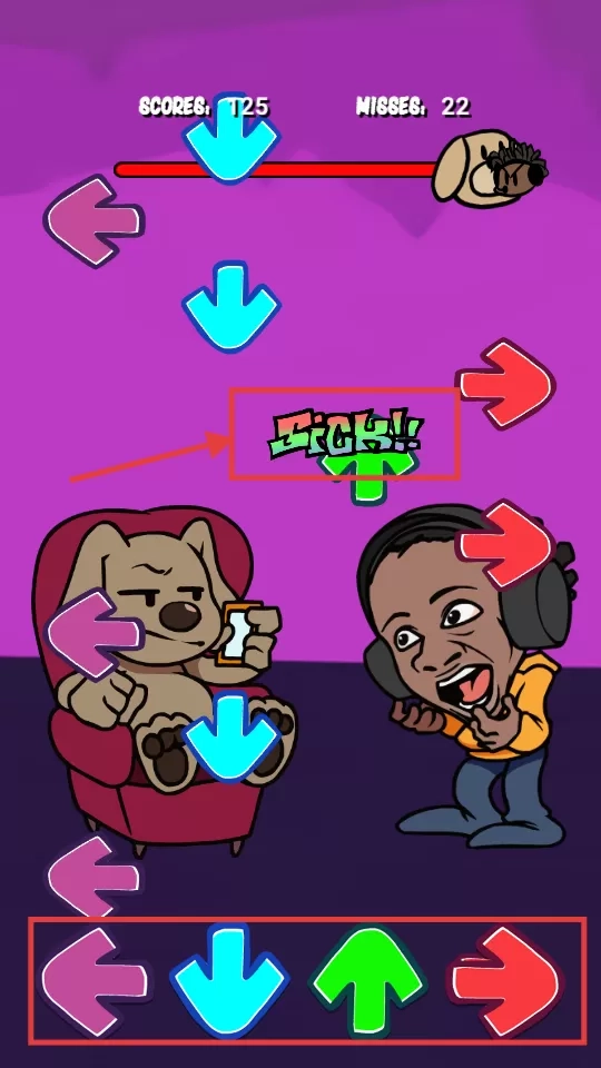 3、当方向箭头下落时,按下方对应【方向键】,触发【SICK】评价可获分,需留意箭头节奏。