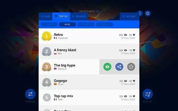 4、录制并和全世界玩家分享你的创作!如果获得足够的票数,你的混音作品就会出现在IncrediboxTop50排行榜里。