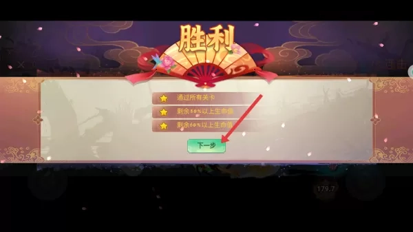4、当成功战胜全部敌人后,胜利界面将会呈现,在此界面中,你能够看到所获得的奖励以及关卡完成状况,点击“下一步”便可继续推动剧情发展。