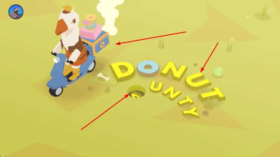4、户外场景中,操控角色骑摩托,留意DONUT COUNTY字母与洞,利用洞吞噬物品推进游戏。