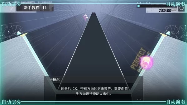 4、依据下方的音符进行点击以获取分数,旁边呈立体状的轨道同样属于音符区域。