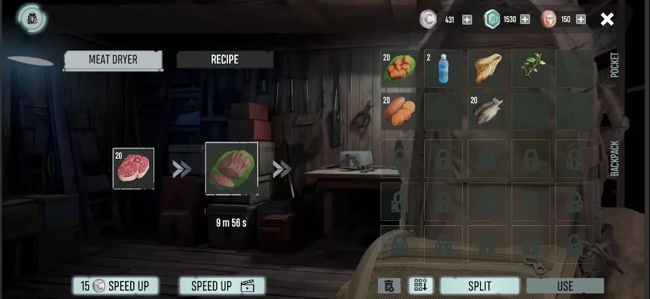 你可以用网捕鱼,也可以把它作为战利品的一部分。鱼在使用前必须煮熟。它可以在篝火上烹制(普通或桶中的篝火)。为此,请将鱼放在上层牢房中,将燃料(木头、竹子)放入下层牢房中。烹饪过程开始。