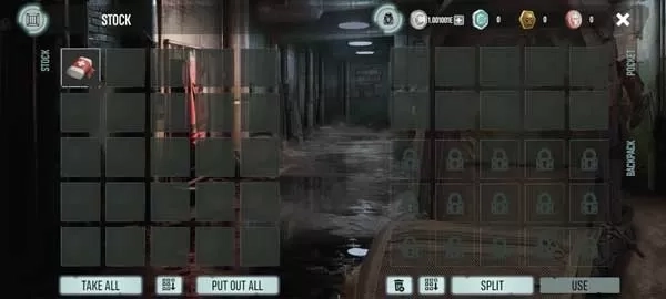 2、当角色停留在一个箱子旁时,可以点击右下角的拾取按钮将物品收集,若想快速转移所有物品至背包,直接点击“TAKE ALL”即可。