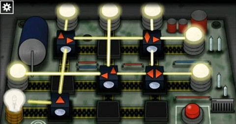 将灯泡装在面板上,再将方块移到正确的位置上,接着点击红色按钮使所有灯全部亮起。
