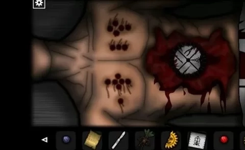 从停尸房出来后,前往右边的房间。在房间里,拿走桌子上的「锤子」,接着用钥匙打开房门并进入。仔细观察尸体胸口处的伤痕,从而获取密码「1635」。随后,使用解剖刀割开尸体肚子上的线,进而得到「金属盘」。