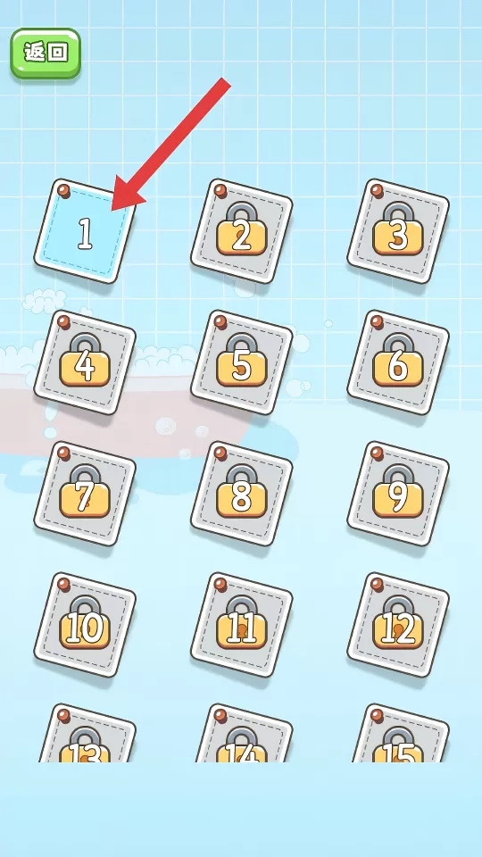 1、于关卡选择界面,点击【1】关卡按钮,从而进入第1关的拼图挑战。