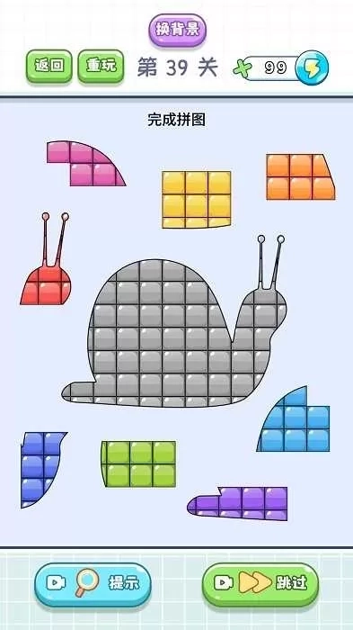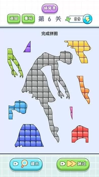 3、成功将所有碎片拼合,组成完整图案,如红框内的图案,即可完成当前关卡。