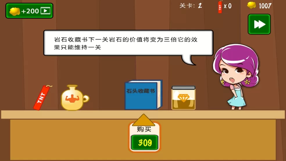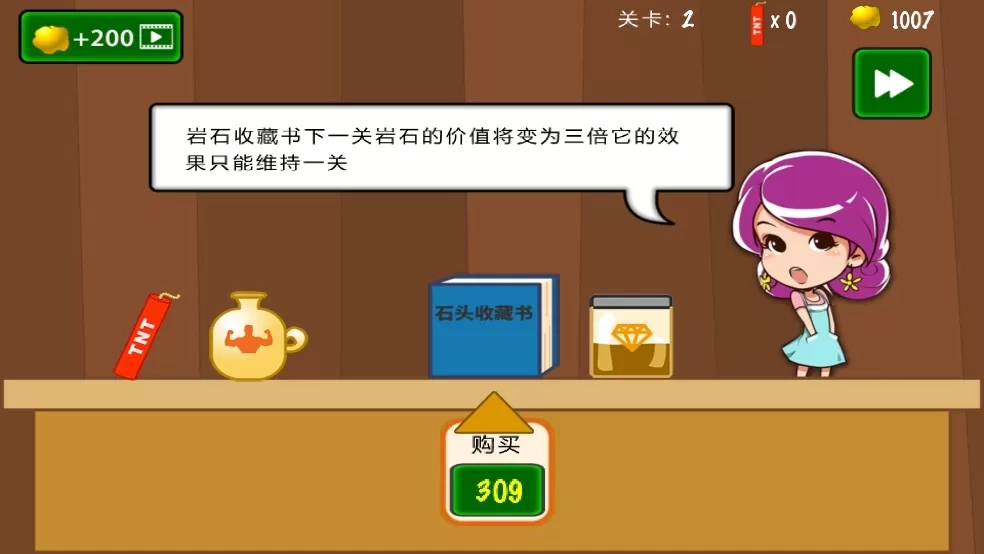 2、下一关,岩石收藏中的岩石价值将变为原来的三倍,此效果仅在本关有效。