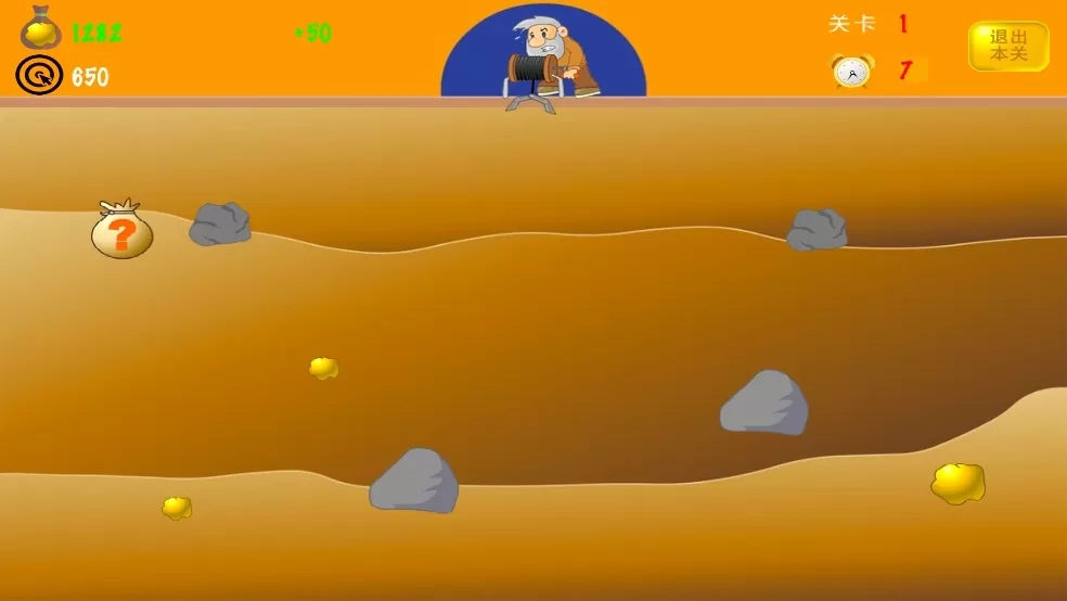 1、通过手指点击或鼠标操作,控制矿工手中的钩爪左右摆动,瞅准时机对准黄金、宝石等价值较高的物品抛出钩子。