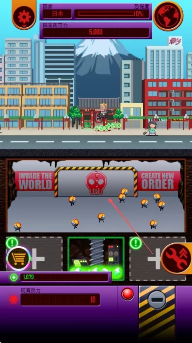 1、进入游戏,查看上方显示的国家,按箭头指示点击小人。
