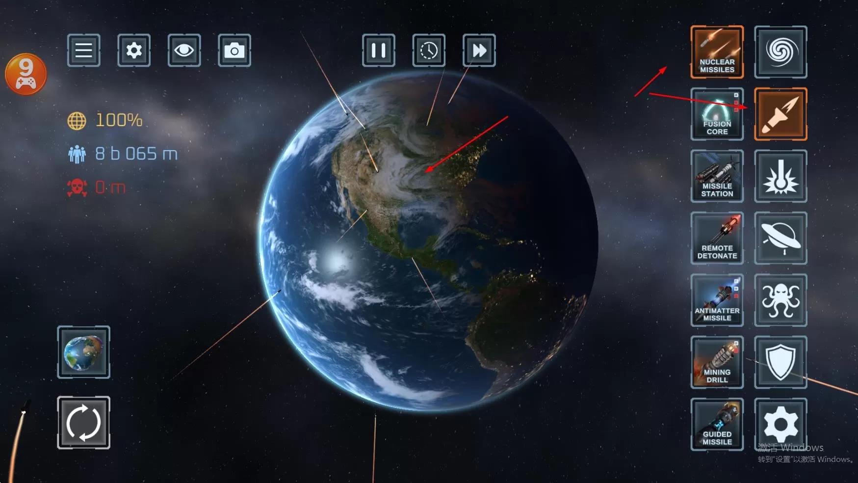 1、可使用如NUCLEAR MISSILES等各类武器,对地球等星球发起攻击,改变星球状态。
