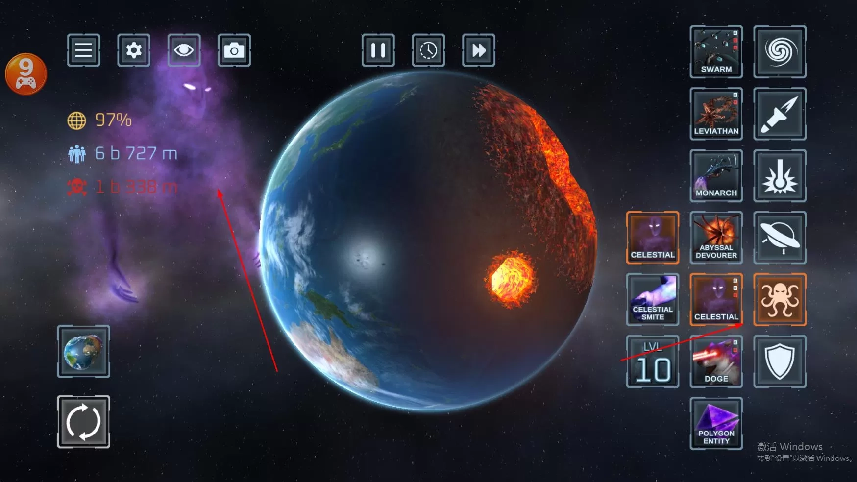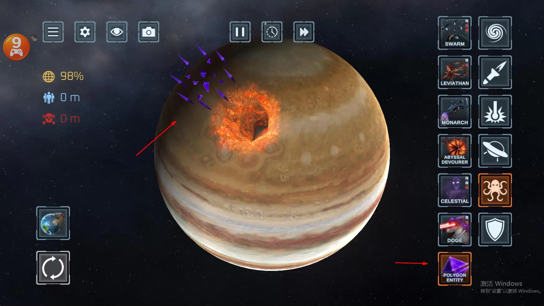 1、选择手段实施破坏:从武器库或灾害列表中挑选破坏方式,瞄准星球指定区域释放,观察破坏效果与威力数值,若触发修复机制则及时调整方案,更换更强力手段或叠加攻击强度。