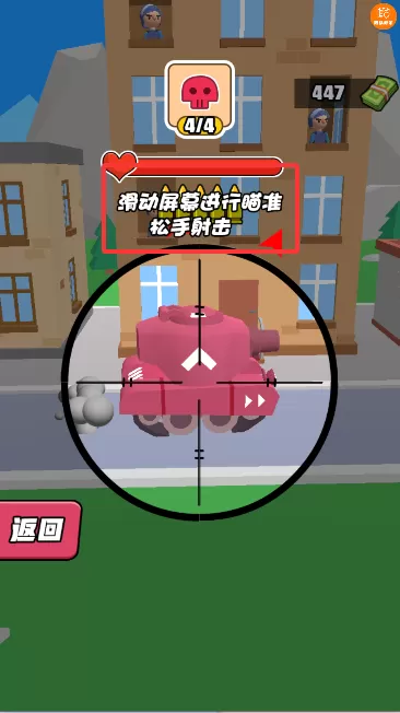 3、长按屏幕瞄准敌人后,松手即可射击。