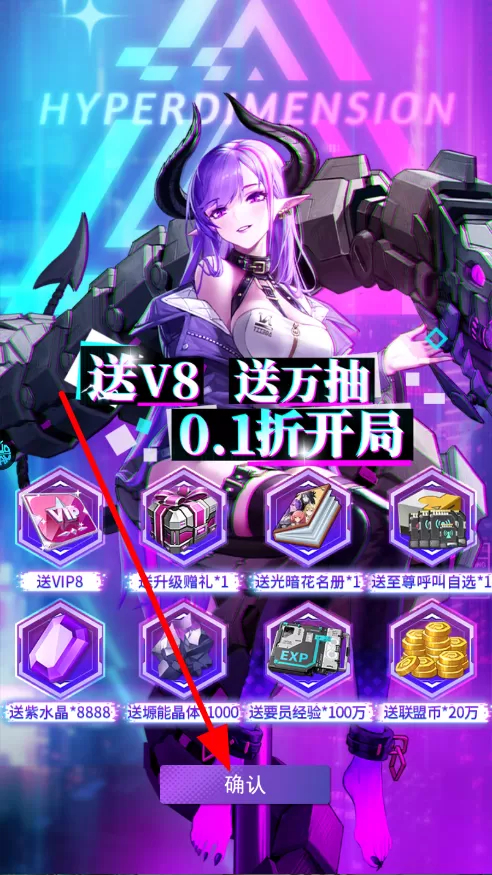 2、游戏设有开局福利,诸如赠送VIP8、万次抽奖机会等。只需点击确认,就能获取这些福利。它们能在前期冒险中提供有力支持,助力角色加速成长。