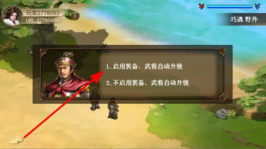1在游戏过程中,你会面临装备、武将自动升级的相关选择。你能够依据自身需求,决定启用或者不启用该功能。需要注意的是,不同的选择将会对装备与武将的升级进程产生影响,所以在做出决定时务必谨慎。
