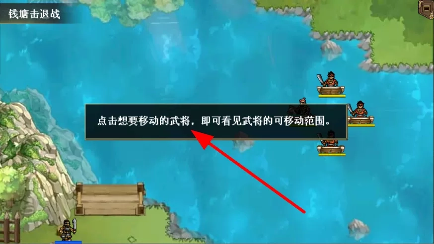 3、进入战场,如钱塘击退战,点击想要移动的武将,即可看见武将的可移动范围,依据范围合理规划武将移动路径,抢占有利位置。