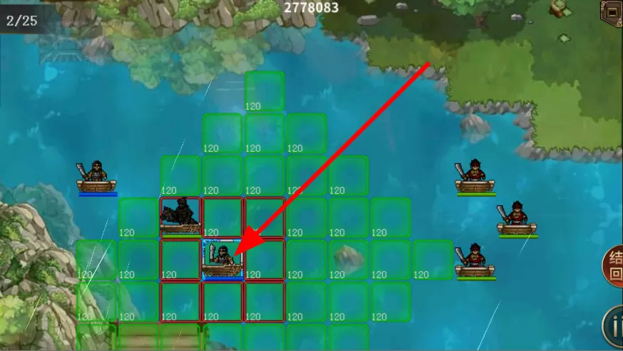 4、在战场的方格区域内,根据武将可移动范围,将武将移动到合适方格,利用地形与位置优势,制定战斗策略,与敌人展开对抗。