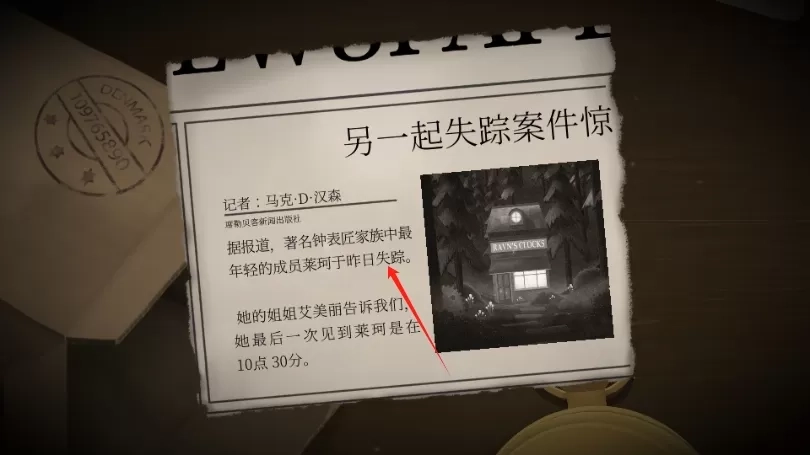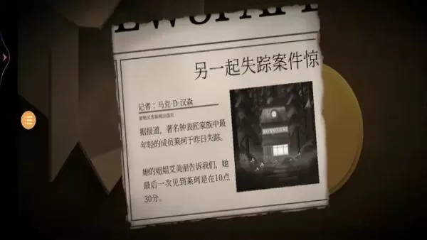 3、关注报纸上的失踪案件信息,这是游戏的关键线索,与朋友共同分析,为寻找失踪的莱珂提供方向。