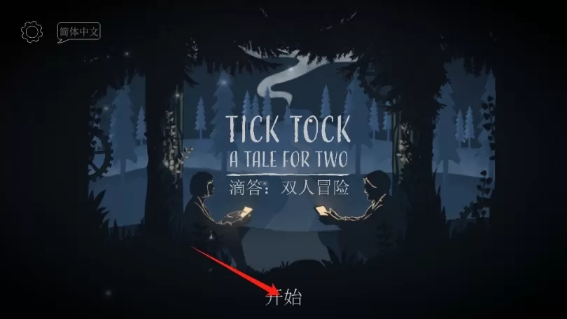 1、点击开始按钮,进入滴答双人游戏,这是开启双人合作冒险的关键操作,需与朋友共同参与。