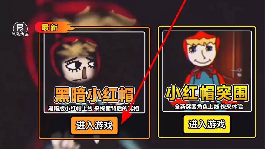 1、首先在游戏初始界面,选择暗黑小红帽模式,点击进入游戏,开启该模式下的冒险之旅,进入到特定的游戏情境中。