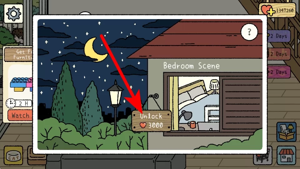 4、想要解锁卧室场景,需要消耗三千个爱心来解锁。