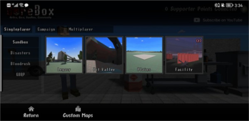 1、进入游戏后,选择“play”按钮,会出现选择地图,这里有四张初始地图供玩家选择,当然你还可以自定义地图,和“我的世界”创建地图比较类似;