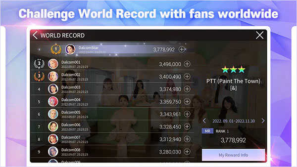 还能观看到全球地区的玩家排名,看看最厉害的粉丝成绩是多少吧。