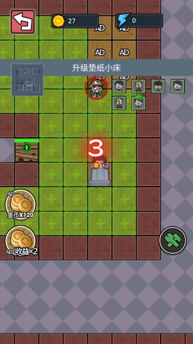 4、在游戏中,你可以先升级自己的小床来获取更多的金币,然后进行放置战斗