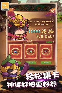1、免费千次抽奖机会!只要达到指定等级,就能参与轮次抽奖,各种不同阵容的武将等您抽取,随心挑选~