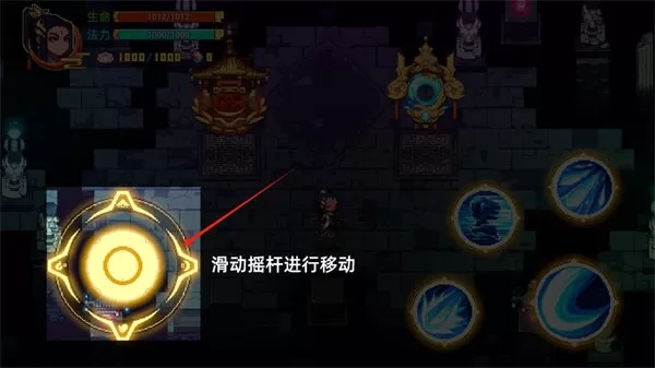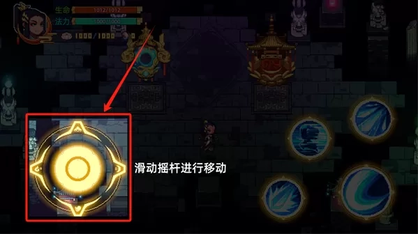 2、直接进入游戏就是探索,点击这个摇杆滑动英雄前往各处,争夺这个世界的强者之位,提升更多的修仙法力;